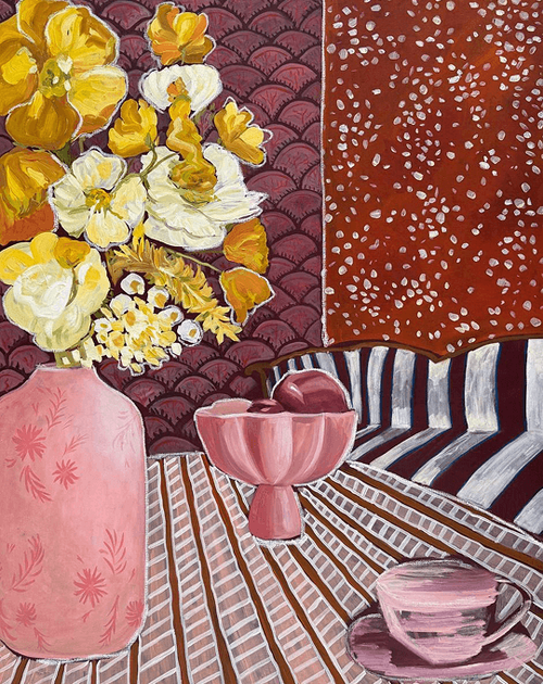 Желтые цветы, полосатый диван, 2025