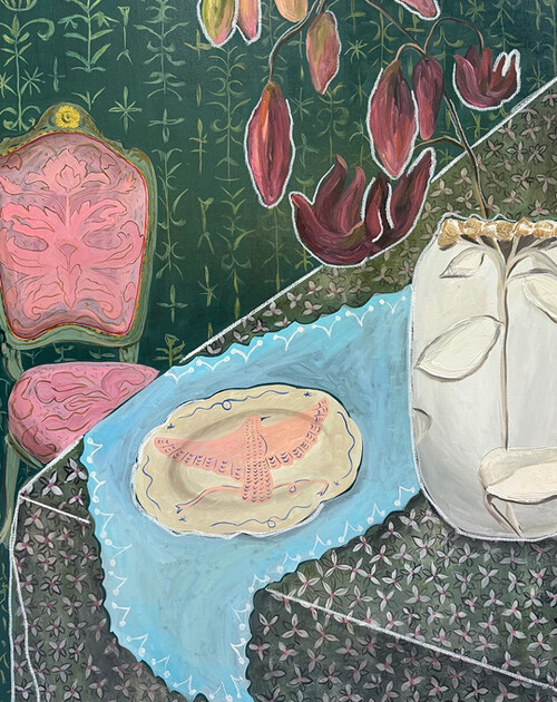 Мой художественный мир состоит из любви к декоративно-прикладному искусству, интенсивных масляных мазков, фруктов и цветов. Повседневность в моём искусстве мечтательна, свободна и многогранна: из простого натюрморта рождаются полуабстрактные композиции, наполненные любовью к прошлому, которое отражается в настоящем через знакомые образы.